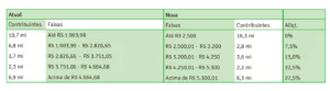 Entre as principais disposições da reforma do Imposto de Renda, temos então um ajuste significativo das alíquotas do IRPF. Como podemos ver na tabela abaixo, quem ganha até dois salários mínimos será beneficiado com a isenção. Do mesmo modo também podemos identificar descontos nas faixas de renda seguintes.